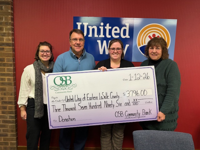 Monday, January 12th, 2026 United Way Donation- Each payroll, OSB employees have the option to donate $5 toward an end-of-year contribution to United Way—and wow, did it add up! This year, our amazing team donated a total of $3,796. On top of that, we were honored to receive an award for being one of United Way’s Top 10 Donors for 2025! Thank you to our incredible employees for helping strengthen our community!